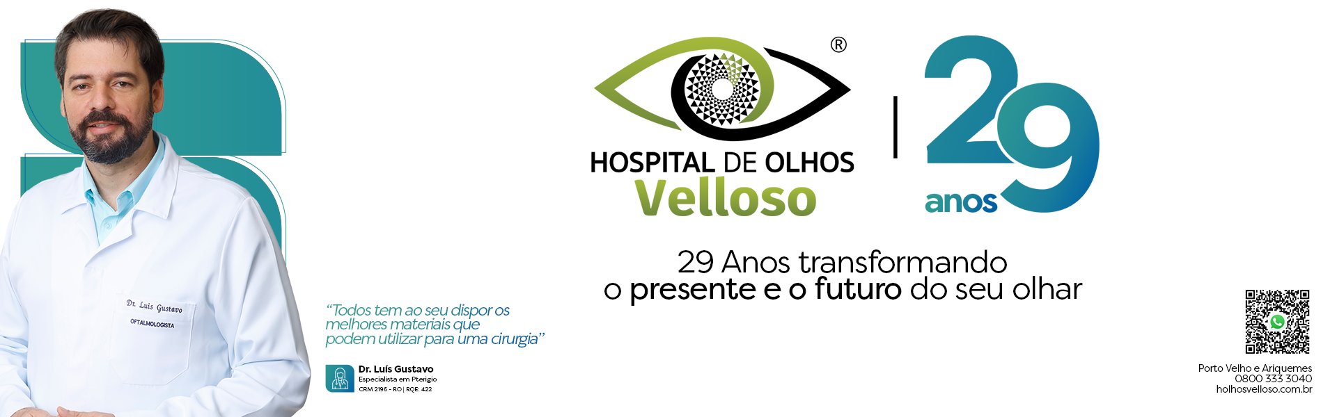 A evolução no atendimento oftalmológico, com diagnósticos, tratamentos, cuidados com os pacientes, novas tecnologias e a dedicação médica em sua formação é a razão pela qual o Hospital de Olhos Velloso se tornou referência no Estado de Rondônia e na Amazônia ocidental. Desenvolvemos um trabalho de ponta, sempre preocupados com a excelência no tratamento e no prognóstico de nossos pacientes. Muito mais do que tratar a saúde ocular, o hospital se destaca pela ampla gama de soluções e o cuidado individualizado e personalizado em cada cirurgia e em cada atendimento, valorizando assim o nosso cliente.