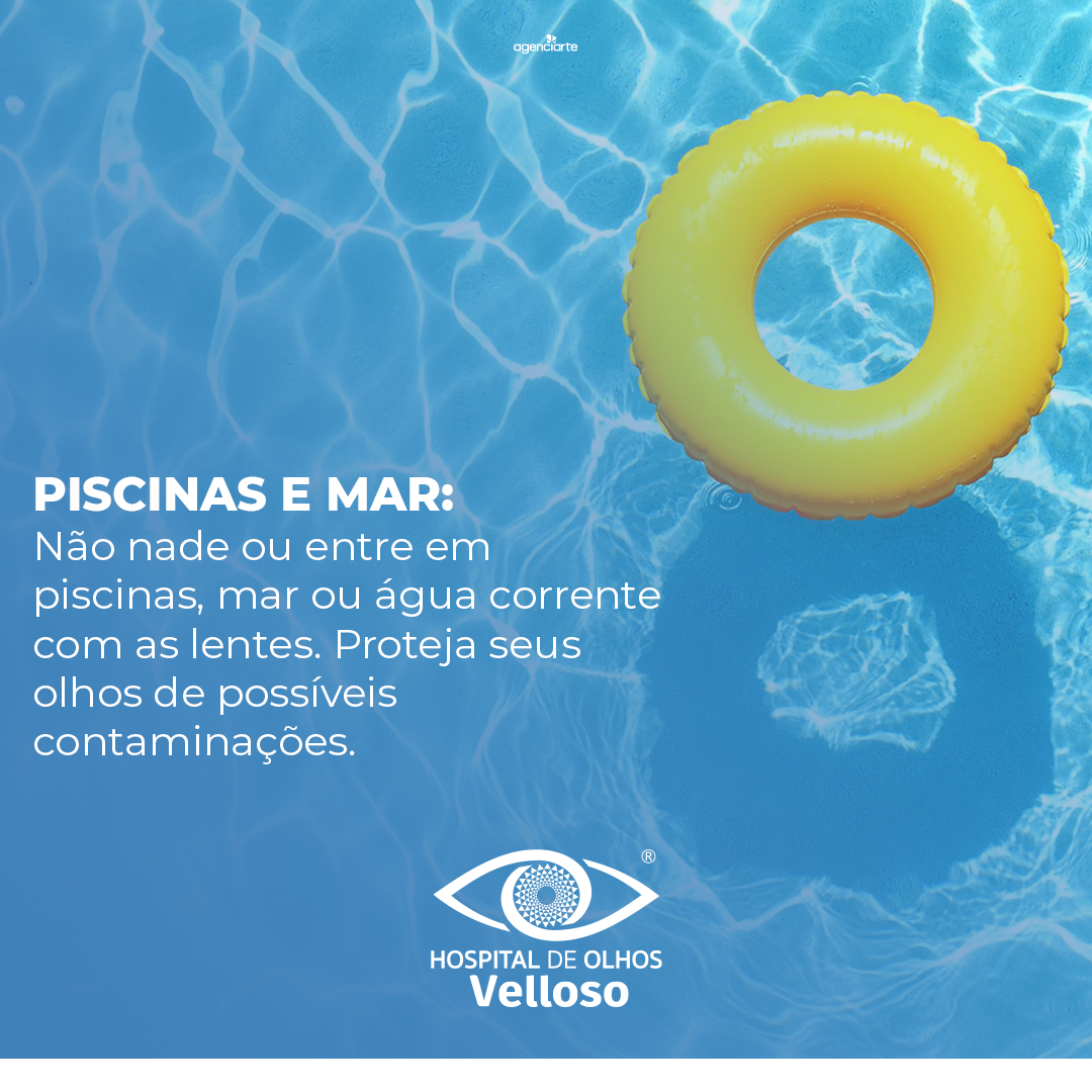 Desfrutar de atividades aquáticas é uma parte importante da vida para muitas pessoas. No entanto, é importante lembrar que a água de piscinas, mar ou qualquer corpo d'água não é compatível com o uso de lentes de contato. A água pode conter uma variedade de bactérias e micro-organismos, bem como produtos químicos como o cloro, que podem irritar os olhos e danificar as lentes. Além disso, lentes de contato podem ser facilmente perdidas na água. Portanto, para proteger seus olhos de possíveis contaminações e preservar suas lentes, é aconselhável removê-las antes de entrar na água. Se for absolutamente necessário, use óculos de mergulho adequados com lentes de prescrição.